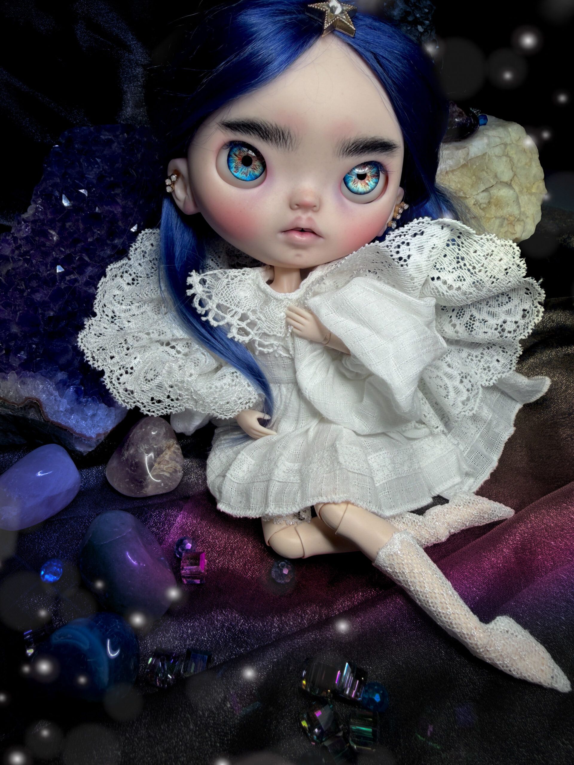 One night a star fell quiet as a breath. Where its light touched the earth a girl remained her hair carrying the blue of night her eyes glowing with distant worlds. Where she walked the darkness grew soft and still. One evening she lifted her gaze to the sky. And a star answered her. Since then a new star shines above brighter than all the others as if the night itself remembers her.