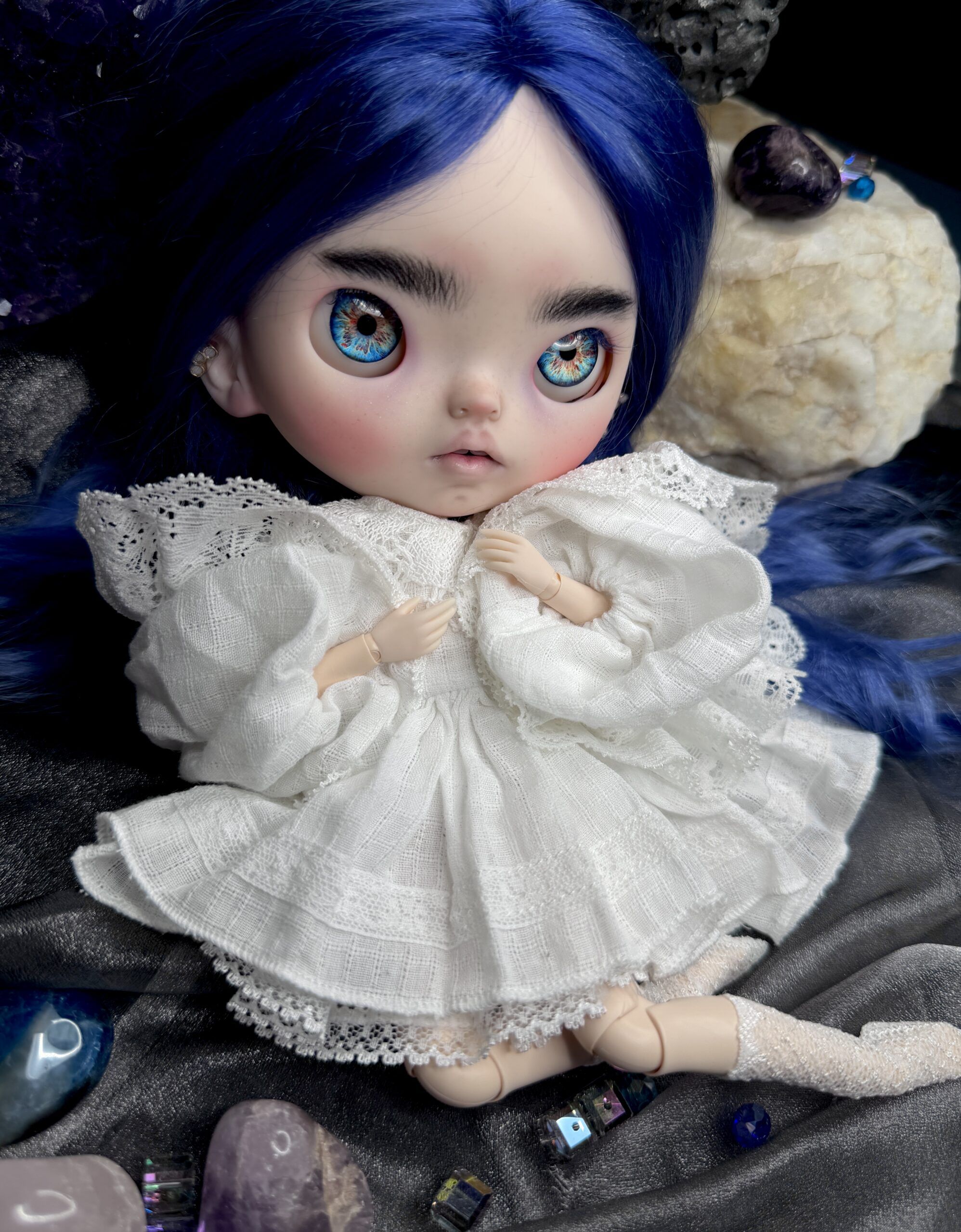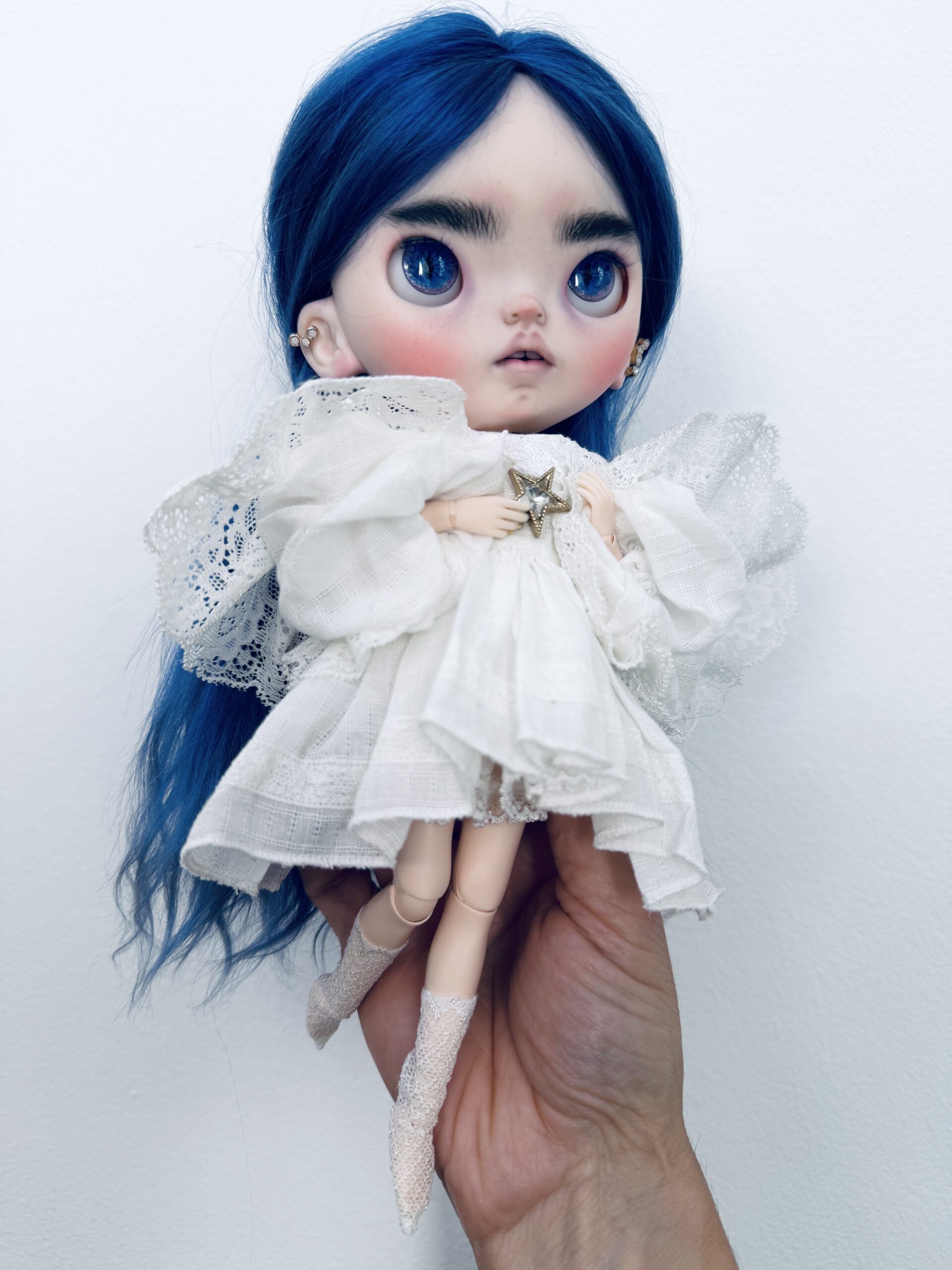 This doll is intended as a decorative object. It is a doll for collectors – handcarved and handpainted and usually dressed individually. The doll is handmade, don’t expect 100% perfection or symmetry. Some materials are not weather-proof and UV resistant. In general, the dolls are intended for indoor use. If you pay attention to these points, you will be able to enjoy the doll for a long time.